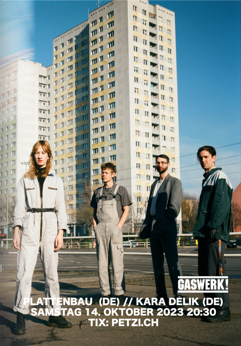 Die Post-Truth-Band Plattenbau lässt das Primitive mit dem Hochgefühl des Inneren aufeinanderprallen. Gitarrenschmetternder, synthiezerschmetternder Noise-Pop und Post-Punk. Plattenbau wurde 2011 im dunklen Keller der ehemaligen Stasi-Zentrale in Ost-Berlin gegründet. Ursprünglich ein reines Aufnahmeprojekt, jammten sie stundenlang über langsam schleifenden Death Rock und hörten sich die Bänder in kalten, dunklen Nächten an, um über alternative Realitäten, Geistergeschichten von Unternehmen und den Tod der Ideologie zu sprechen.