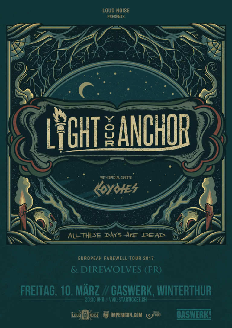 Die Zeiten der grossen Punk Hymnen und der eingängigen Hardcore-Riffs sind vorbei? Mitnichten! Die fünf Hamburger von Light Your Anchor geniessen nach zahlreichen Tourneen kreuz und quer durch Europa einen respektierten Platz in der europäischen Melodic Hardcore Szene. Mit ihrem zweiten Album «Homefires» haben sie ihren Status gefestigt. Nach sechs erfolgreichen Jahren auf der Bühne sagen sie nun aber mit ihrer Abschiedstour auf Wiedersehen zu ihren Fans – komm vorbei und sag «Goodbye»!