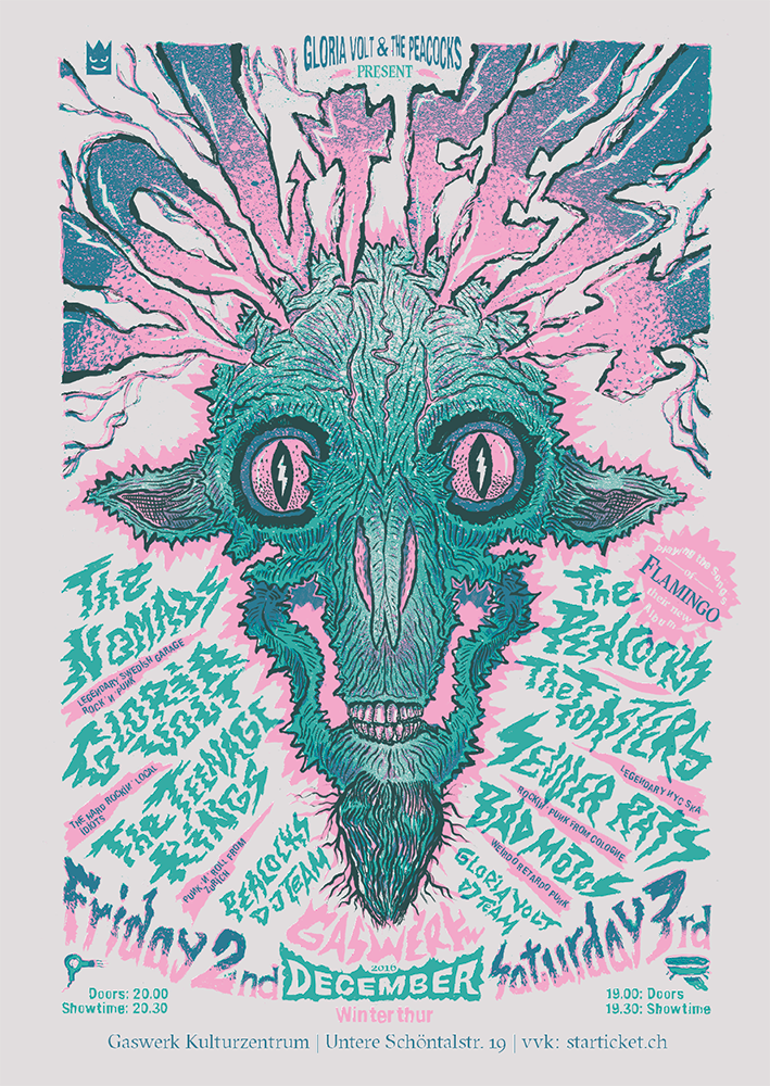 Sie sind cool. Sie sehen gut aus. Und sie lieben, was sie machen. The Peacocks schauen auf eine imposante Bandbiografie zurück, sind aber noch lange nicht bereit diese Geschichte abzuschliessen. Hin und wieder kristallisiert sich ihr flüchtiges Werk aus Schall, Rauch, Schweiss und Bandtourabgaswolken zu einem soliden, physischen Tonträger.. Nach vier Jahren ist das nun wieder soweit! Exklusiv spielen The Peacocks von ihrem neuen Album «Flamingo». Rotziger Punkrock mit Surf-, Beat- und Billy-Einflüssen, präsentiert auf die gewohnt mitreissende, unverkennbar-melodiöse Art.