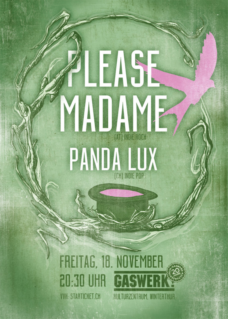 Weisse Hemden und schwarze Melonen – auf den ersten Blick scheinen die Jungs von Please Madame eher Kubricks’ Clockwork Orange entsprungen zu sein als der Musikwiege Salzburg. Hingegen geht ihr Auftritt ganz ohne Gewalt über die Bühne – und dennoch ist die Überzeugungskraft ihres Indie-Rock jedoch ganz gewaltig. Eingängige Indie-Harmonien gepaart mit kraftvollem Rock ergeben eine Kombination, die man nicht so schnell wieder aus den Gehörwindungen herausbekommt. Zwischen Berlin und München machen die Salzburger kurz in Winterthur halt um uns exklusiv zu beglücken.