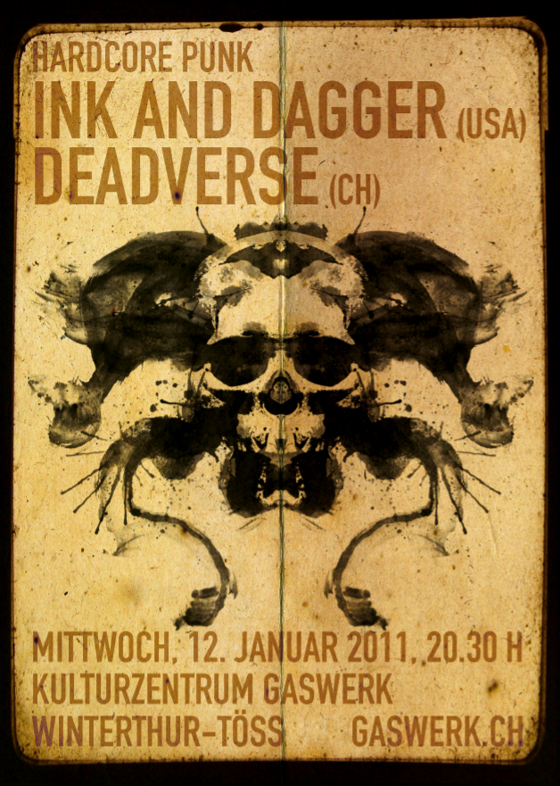 Ink & Dagger heisst zu Deutsch Tinte und Dolch. Die Band war in den 90ern bekannt für ihre abartigen Bühnenshows – inklusive auf Weihnachtsbäume kotzen. Musikalisch stach dich Band aus Philadelphia konstant mit schrägen Riffs, fiesem Hardcore und donnernden Doube-Bass zu. Bis zum 30. August 2000, als Sänger Sean Patrick McCabe starb. Er ist im Vollrausch an seiner eigenen Kotze erstickt – was man dann wohl Ironie des Schicksals nennt. Die Band löste sich auf. Aber seit 2010 touren Ink & Dagger wieder. Die Position des Sängers nimmt Geoff Rickly der amerikanischen Post-Hardcore-Band Thursday ein.