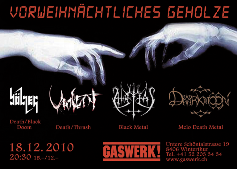 Black Metal der eingängigeren Sorte bieten Atritas aus Basel. Ihre Musik zeichnet sich vor allem durch melodiöse Gitarrenparts kombiniert mit blastenden Drums und einer keiffenden, zwischen Hoch und Tieftönen variierenden Stimme aus. Bereits 1997 gaben die Blackmetaller ihr erstes Demo heraus, seit diesem Zeitpunkt arbeiten die Jungs unentwegt an der Verdunkelung der Schweizer Musikszene, am 18.Dezember bekommen sie erneut Gelegenheit dazu.
