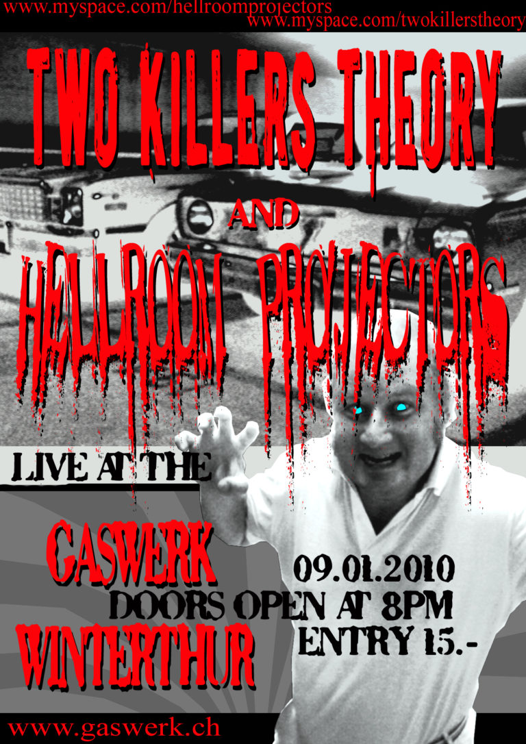 Am 3. Dezember ist ihr neues Album «Killer Eyes» der Zürcher Two Killers Theory erschienen. Die Band bewegt sich in einer Welt zwischen Grunge, Crossover und Stonerrock - sie selbst bezeichnen ihren Stil als Crack-Rock. Die drei Musiker aus Zürich begeistern mit krachender Gitarre, wummrigem Bass, knackigem Schlagzeug und dem kraftvollen Gesang von Sänger Dan Ammeter. Two Killers Theory werden das Gaswerk rocken, als gäbe es kein morgen.
